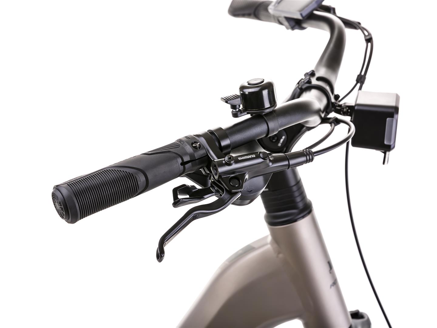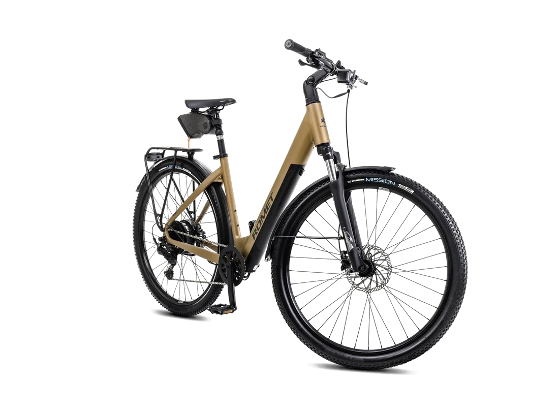 eBike urbana de trekking. Marco de aluminio ligero, batería integrada y motor hub trasero Ananda. Perfecta para rutas costeras, paseos diarios y los tours guiados de Adelmar.